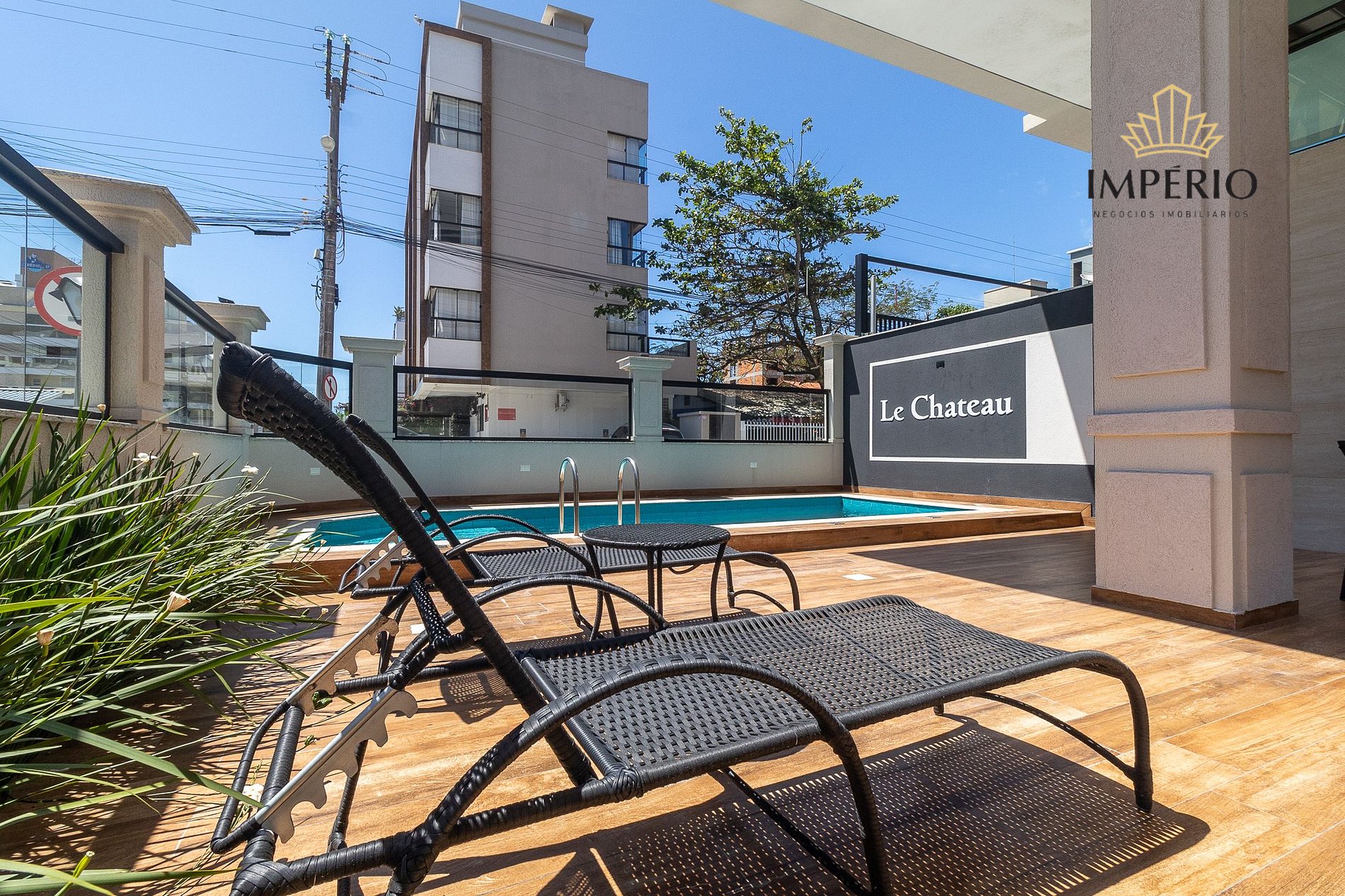 O Edifício LE CHATEAU destaca-se pela sua privilegiada localização na praia de Bombas, a apenas a 250m da avenida principal e 300m da praia, próximo de Supermercado, padaria, restaurantes e farmácias .