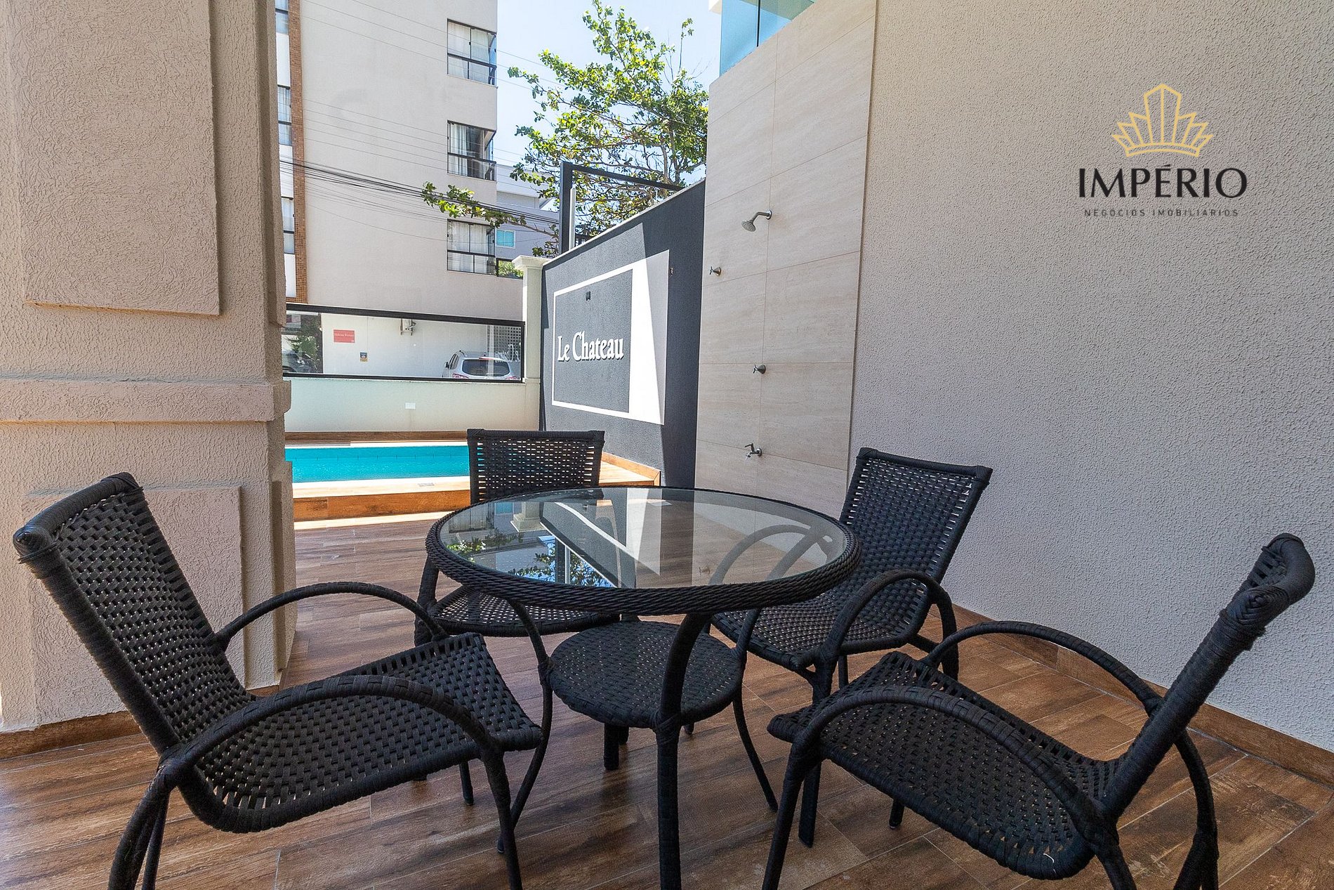O Edifício LE CHATEAU destaca-se pela sua privilegiada localização na praia de Bombas, a apenas a 250m da avenida principal e 300m da praia, próximo de Supermercado, padaria, restaurantes e farmácias .