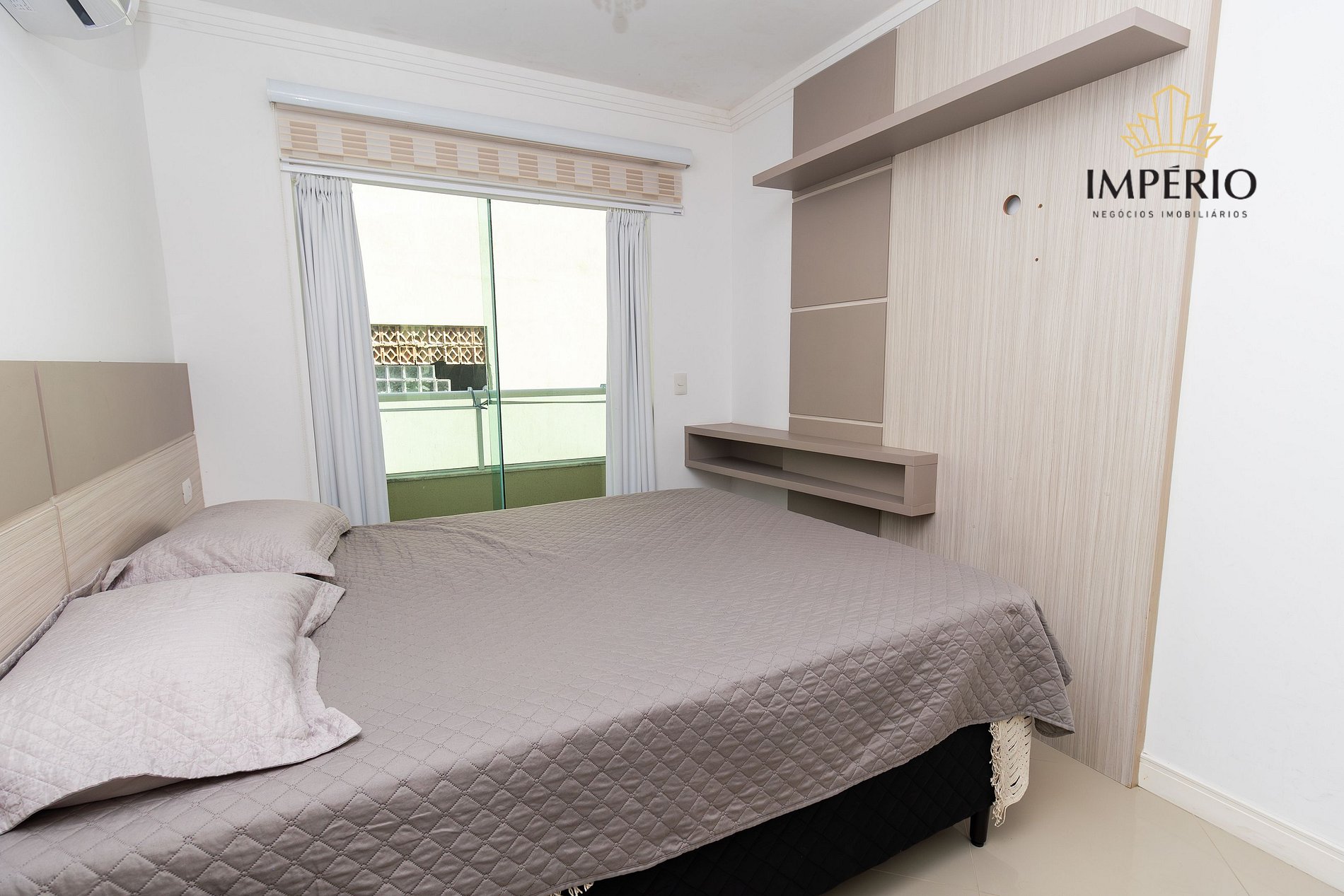 01 dormitório com cama de casal queen e ar condicionado