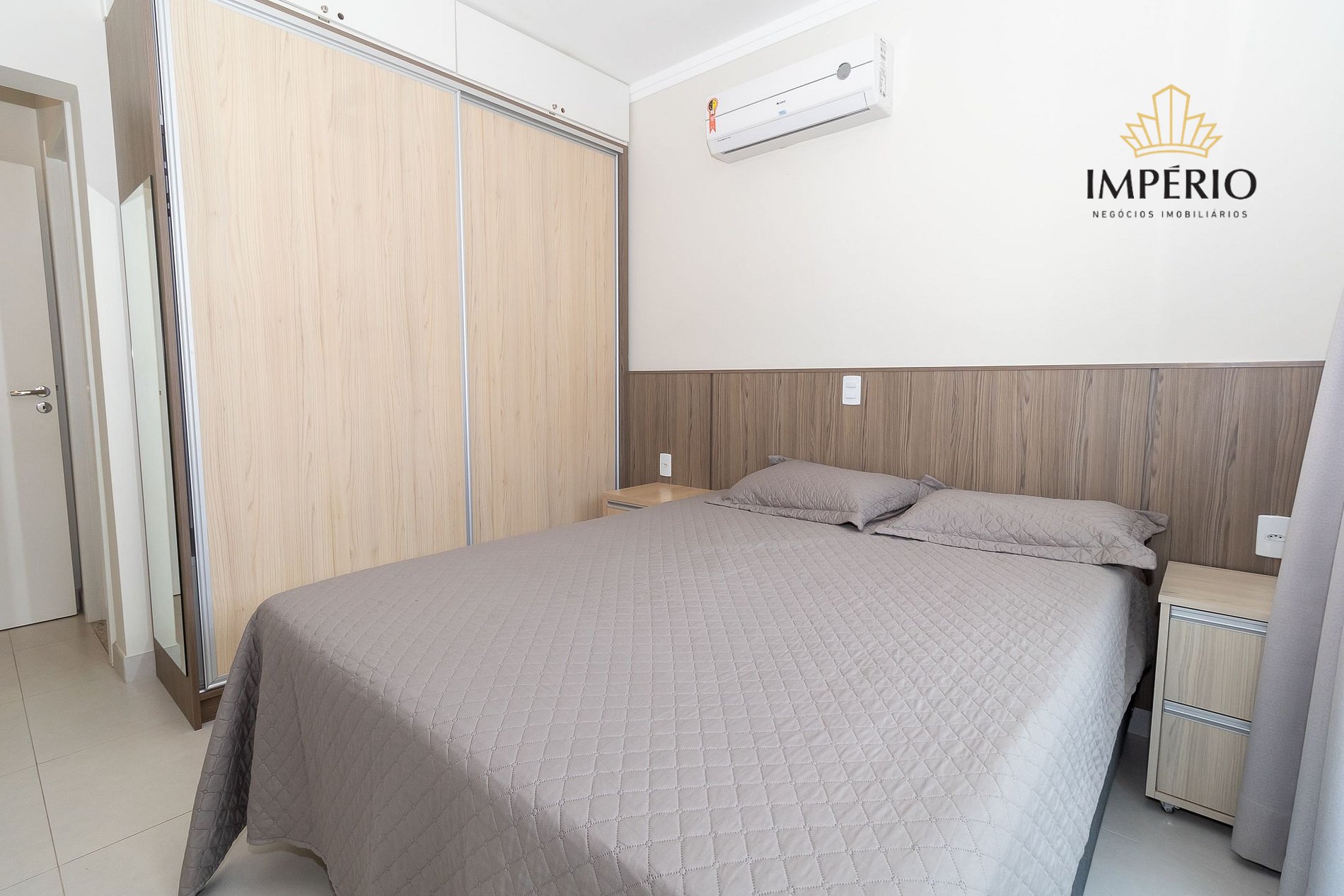 01 dormitório com cama de casal e ar condicionado