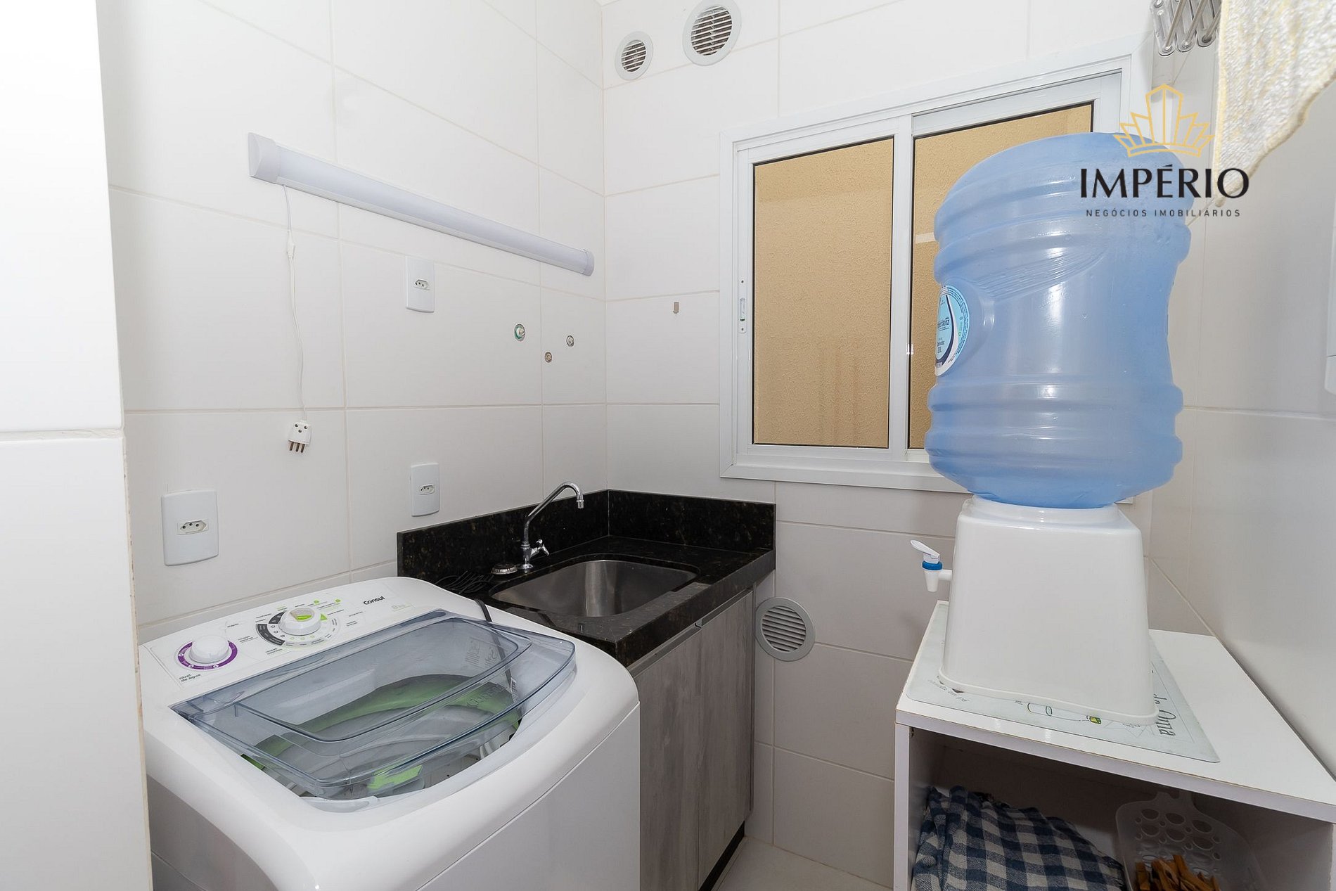 Lavanderia com tanque e máquina de lavar
