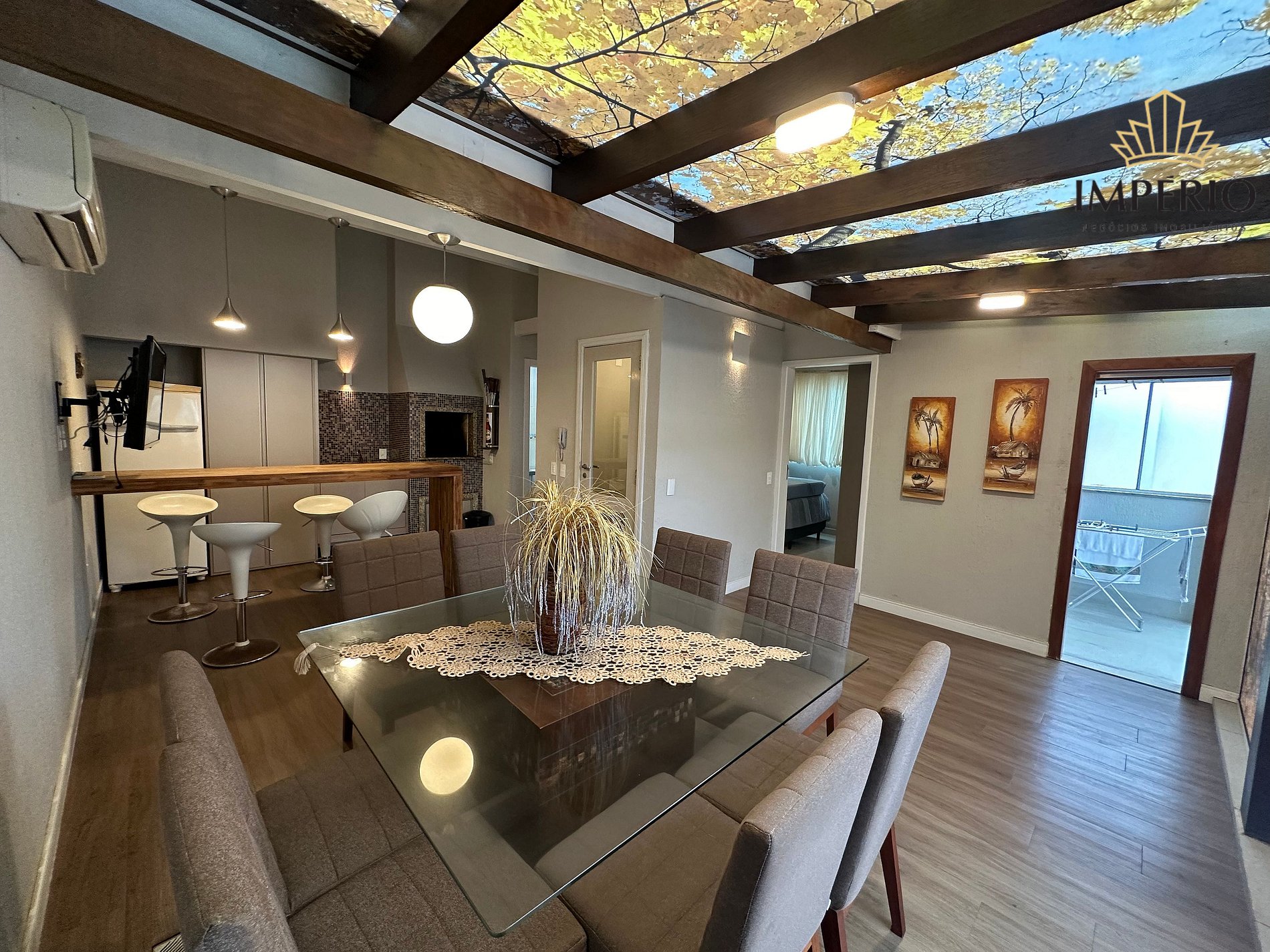 O apartamento 202 bem mobiliado possui 03 dormitórios, sendo 3 suítes, sala de estar, espaço superior com área de churrasqueira e uma espaçosa mesa de jantar, ótimo para desfrutar bons momentos com sua família e seus amigos!!