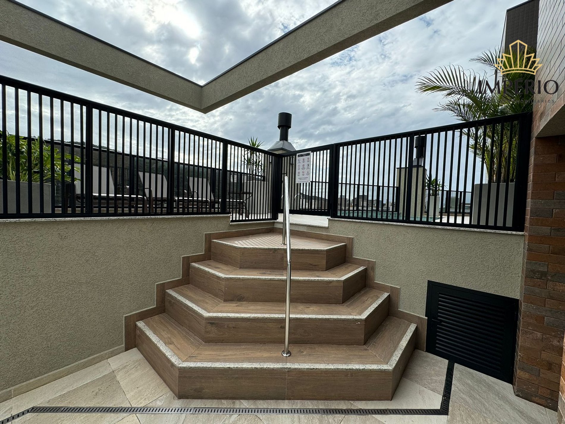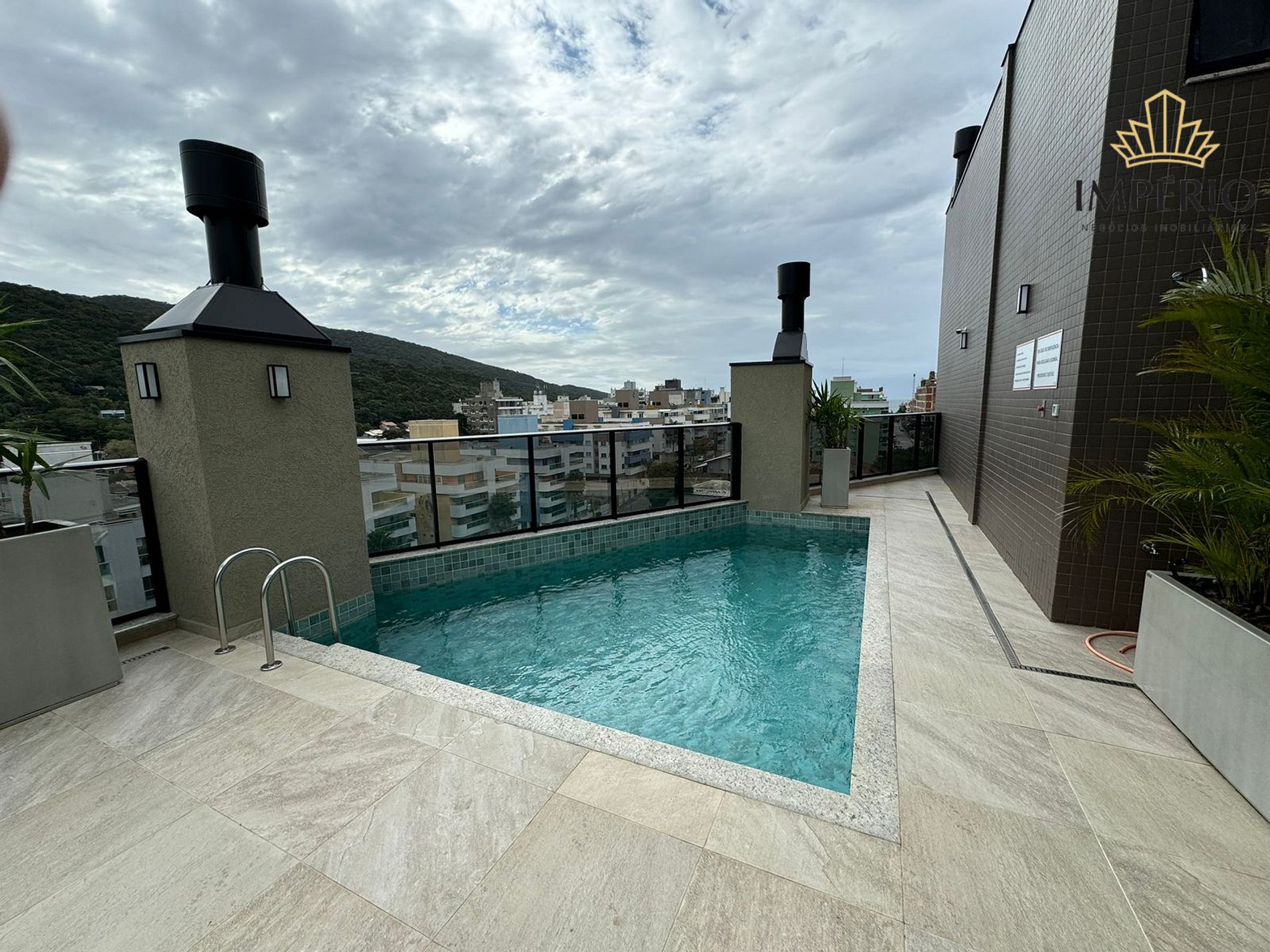 O condomínio conta com piscina compartilhada em seu terraço, de onde é possível ter uma vista mar.