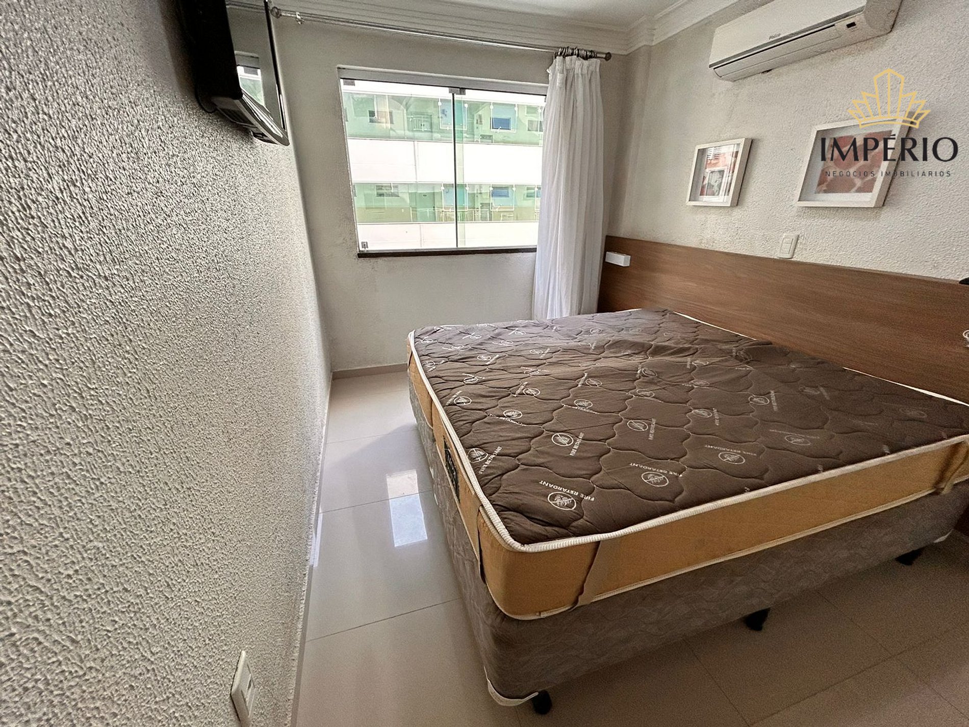 01 dormitório com cama de casal, TV e ar condicionado