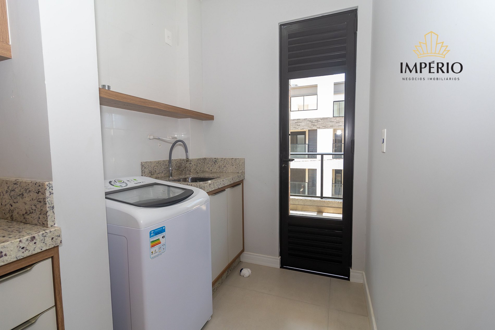 Lavanderia com tanque e máquina de lavar