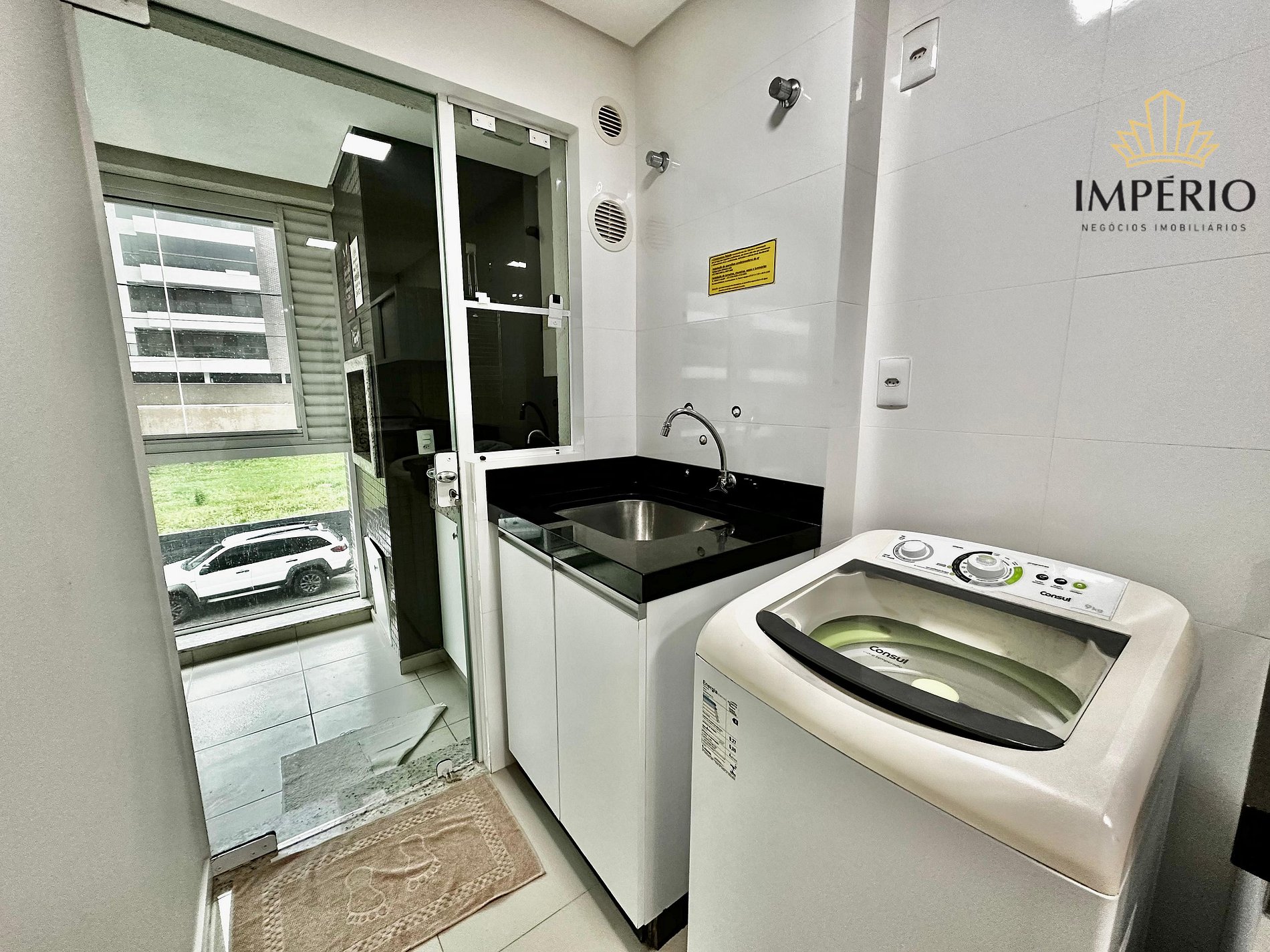 Lavanderia com tanque e máquina de lavar