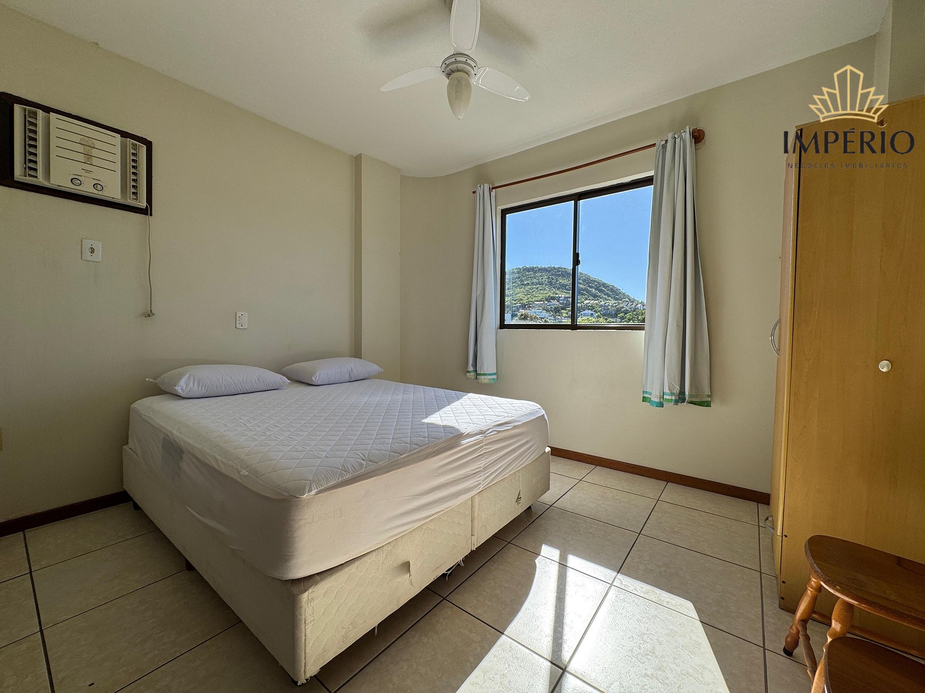 01 dormitório com cama de casal e ar condicionado