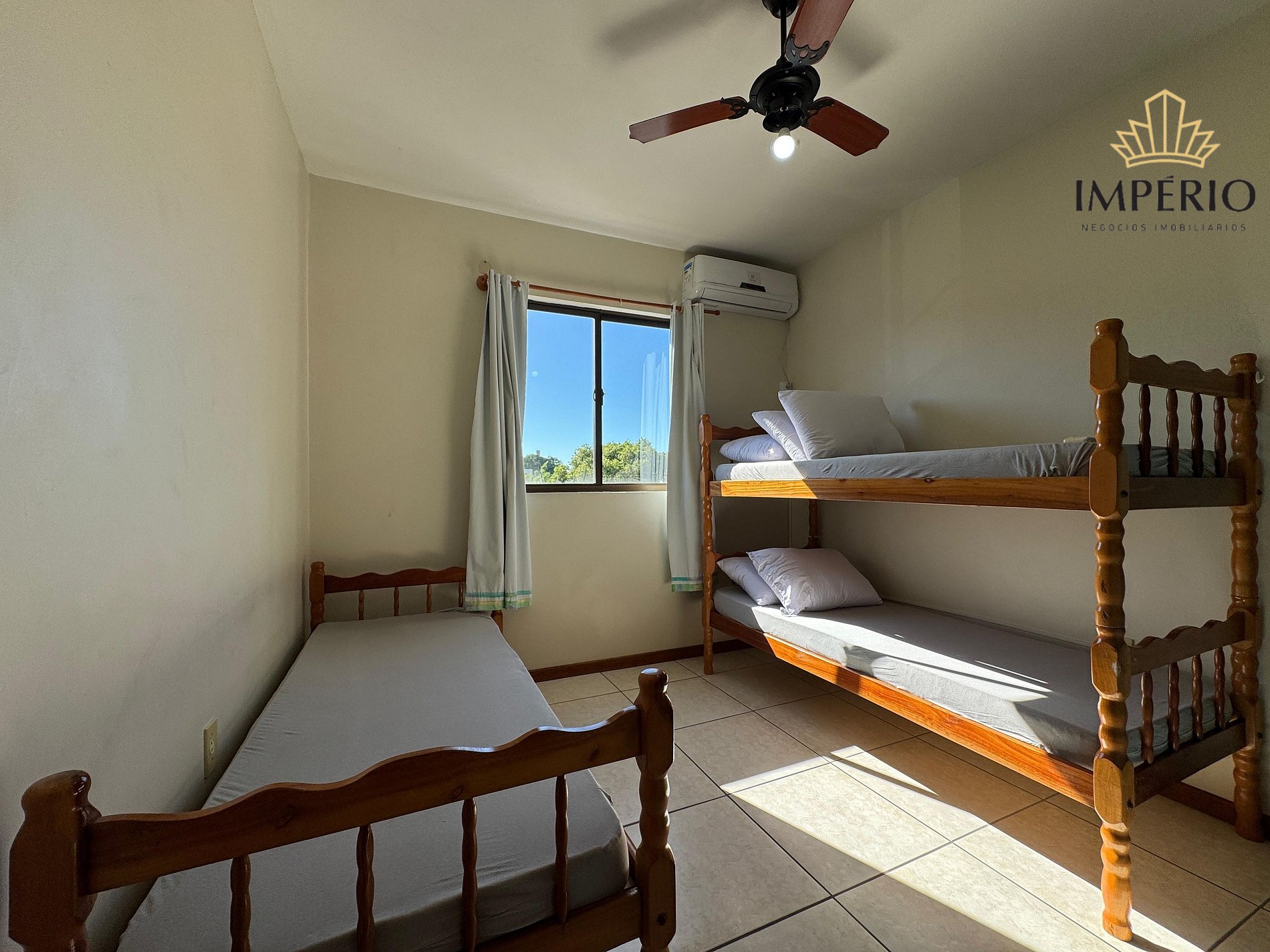 01 dormitório com duas beliches com camas de solteiro e ar condicionado