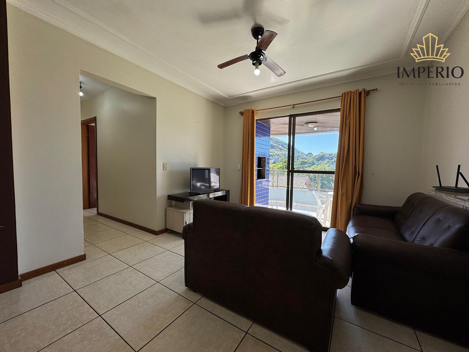 Sala de estar, TV e ar condicionado