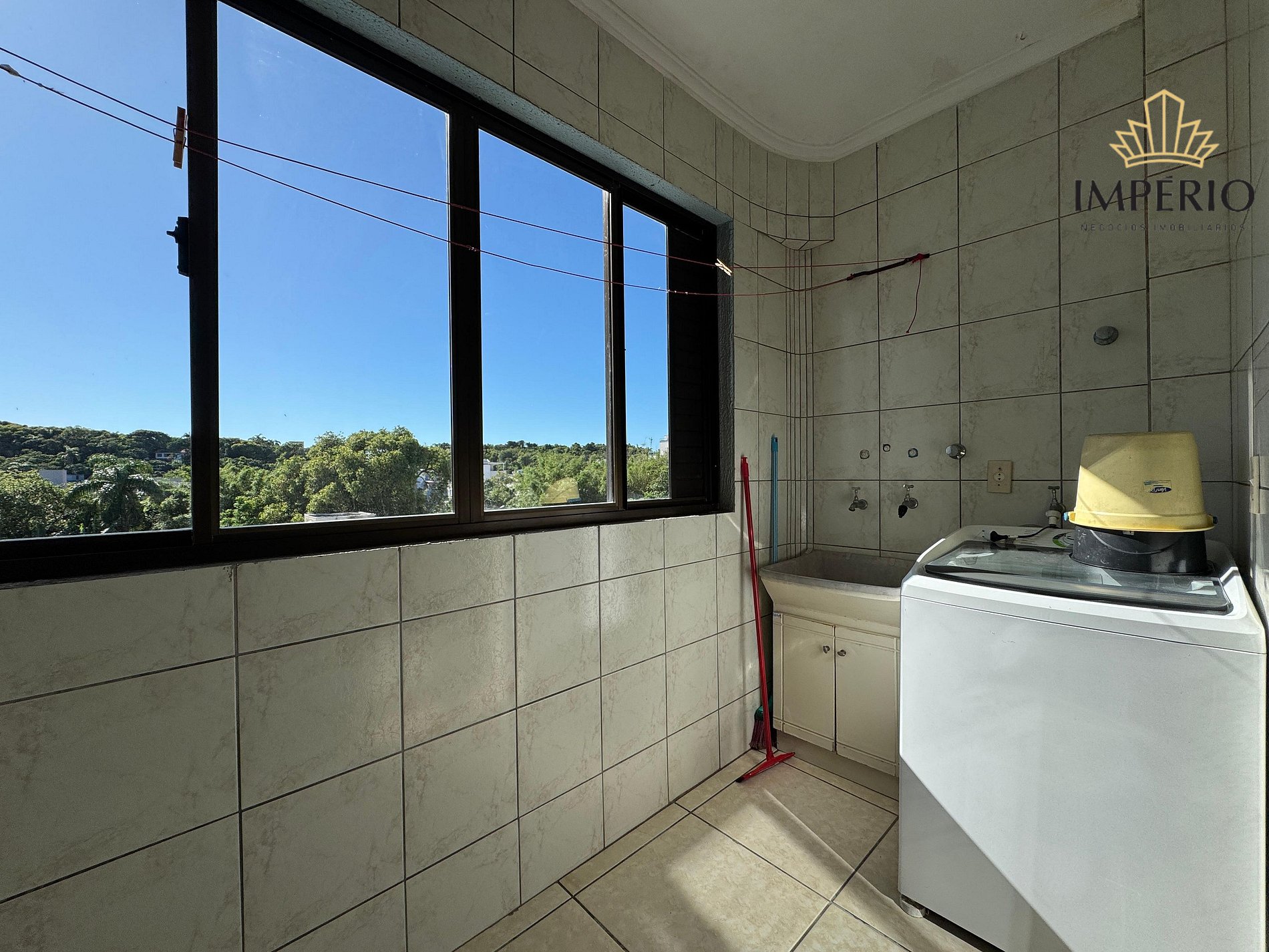 Lavanderia com tanque e máquina de lavar