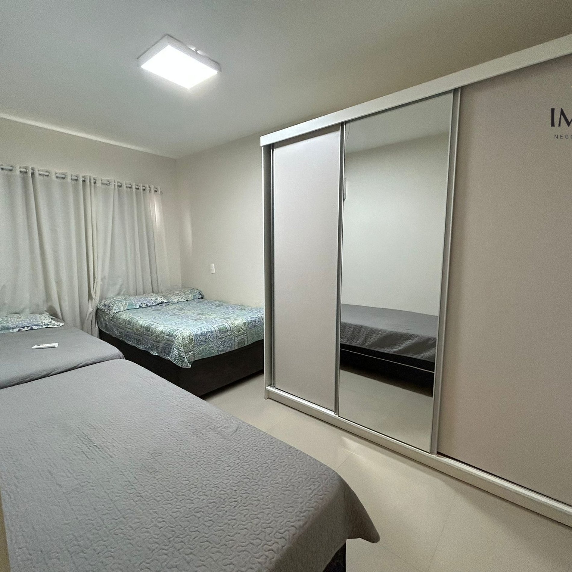 01 dormitório com cama de casal, 2 camas de solteiro e ar condicionado