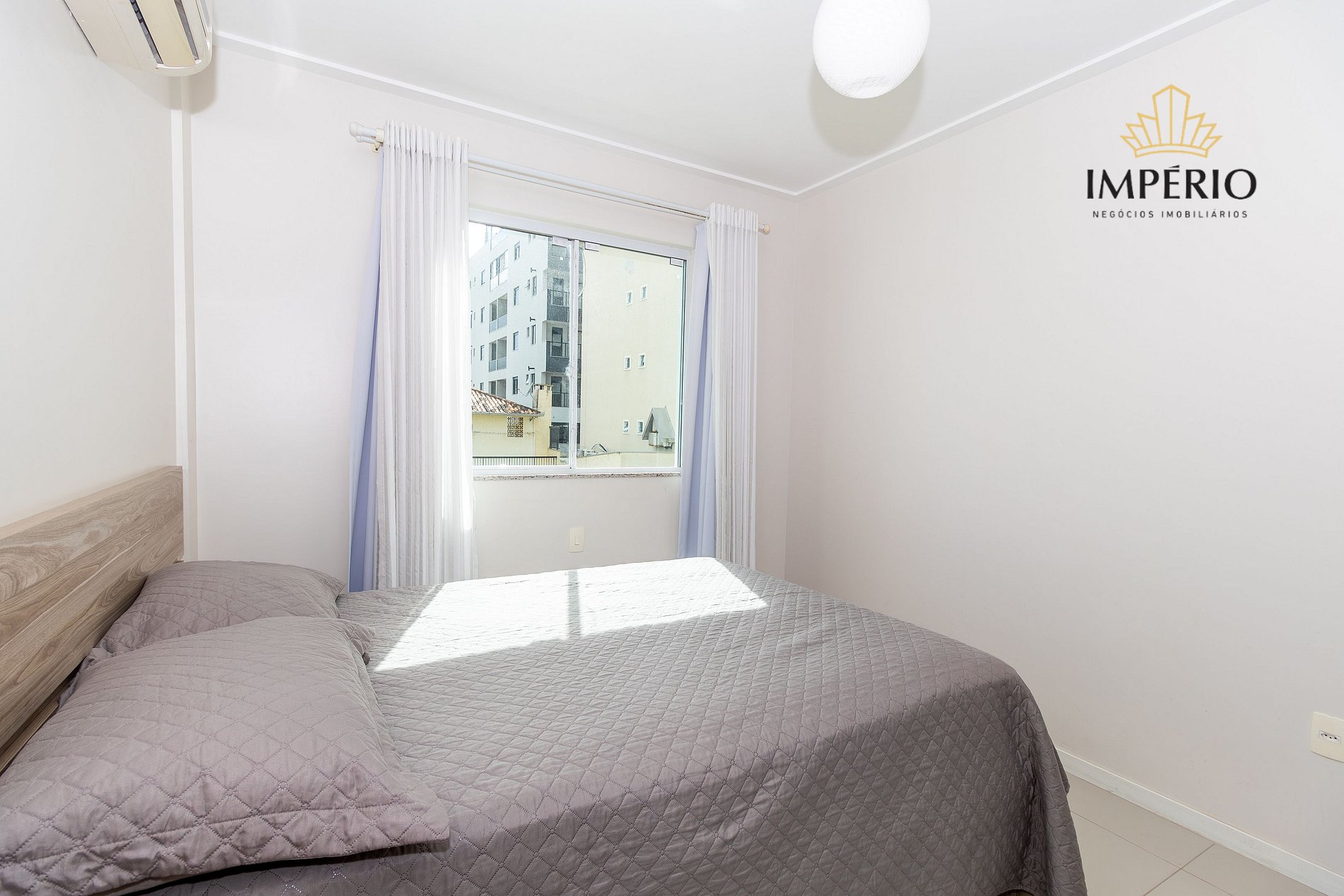 01 quarto com cama de casal, cama auxiliar de solteiro e ar condicionado