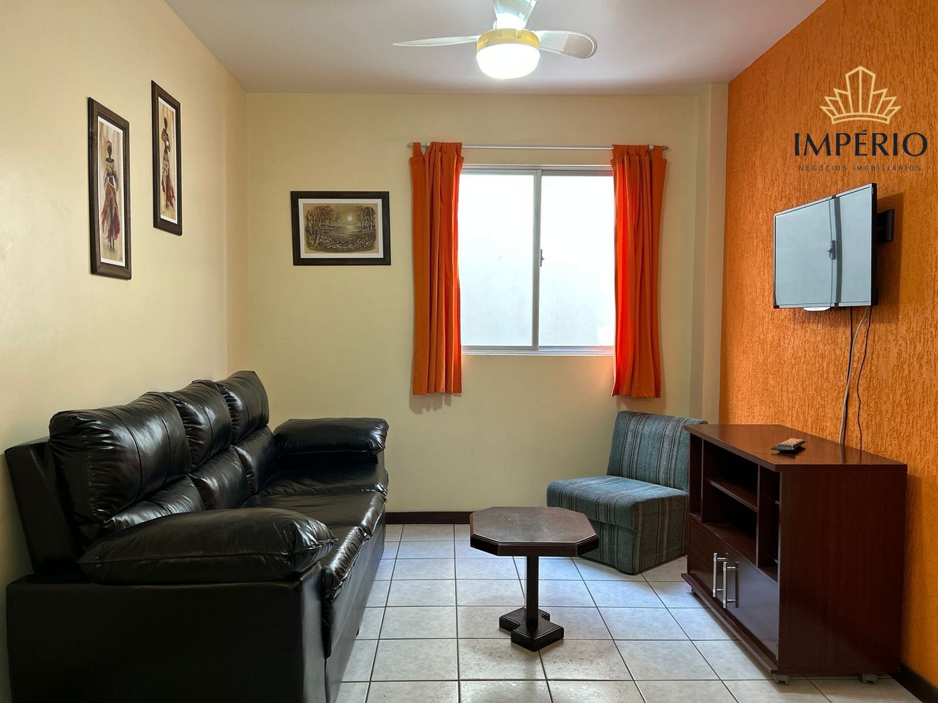 Sala de estar com ventilador de teto e Tv 28' não Smart;